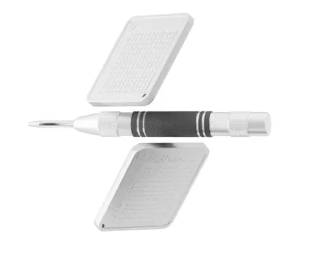- Unpack the OneKey KeyTag (includes two metal plates, a punch pen, and instructions)